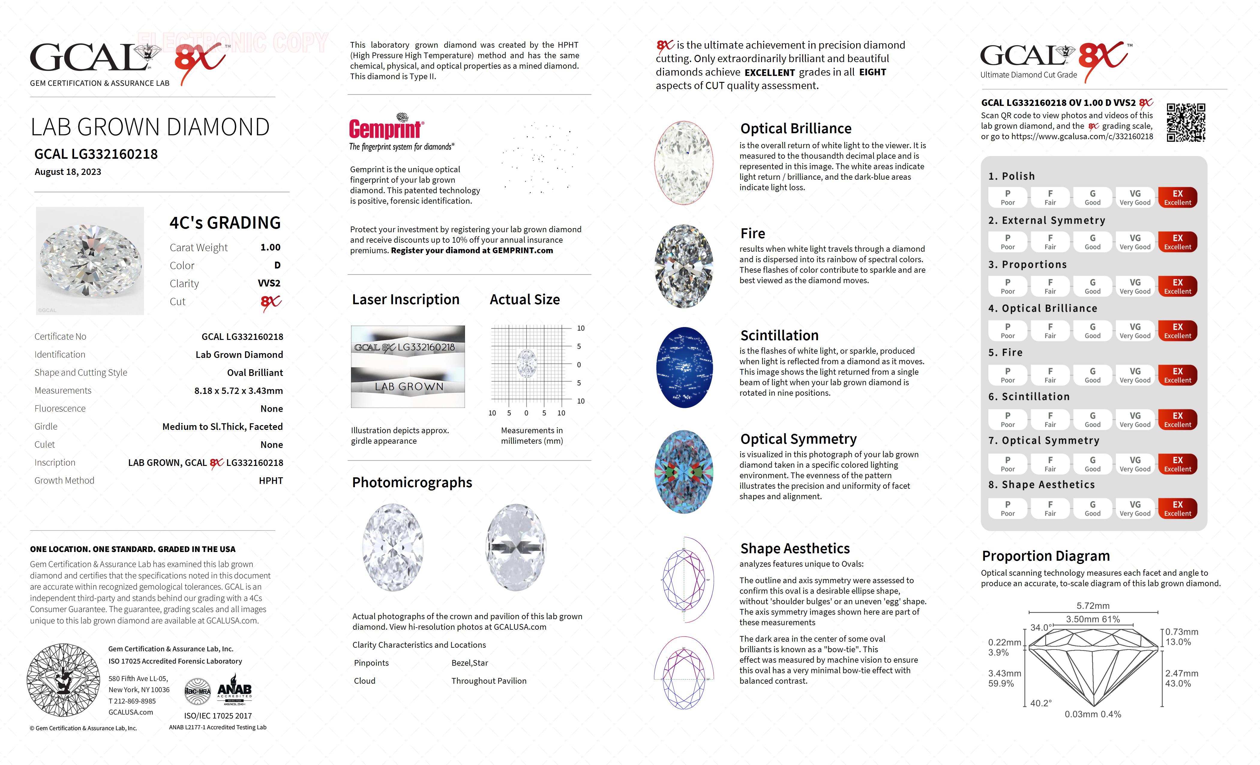 Oval Brilliant 1.00ct, D, VVS2