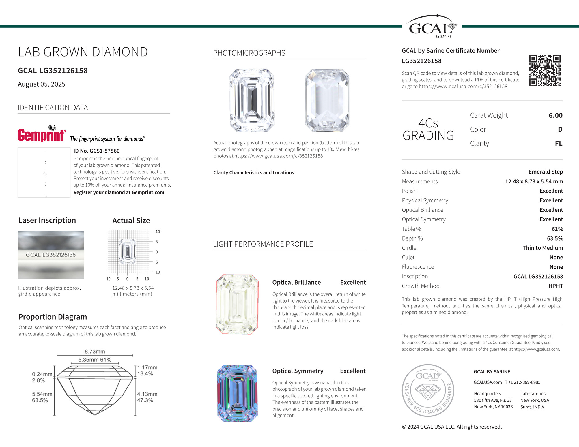 Emerald Step 6.00ct, D, FL