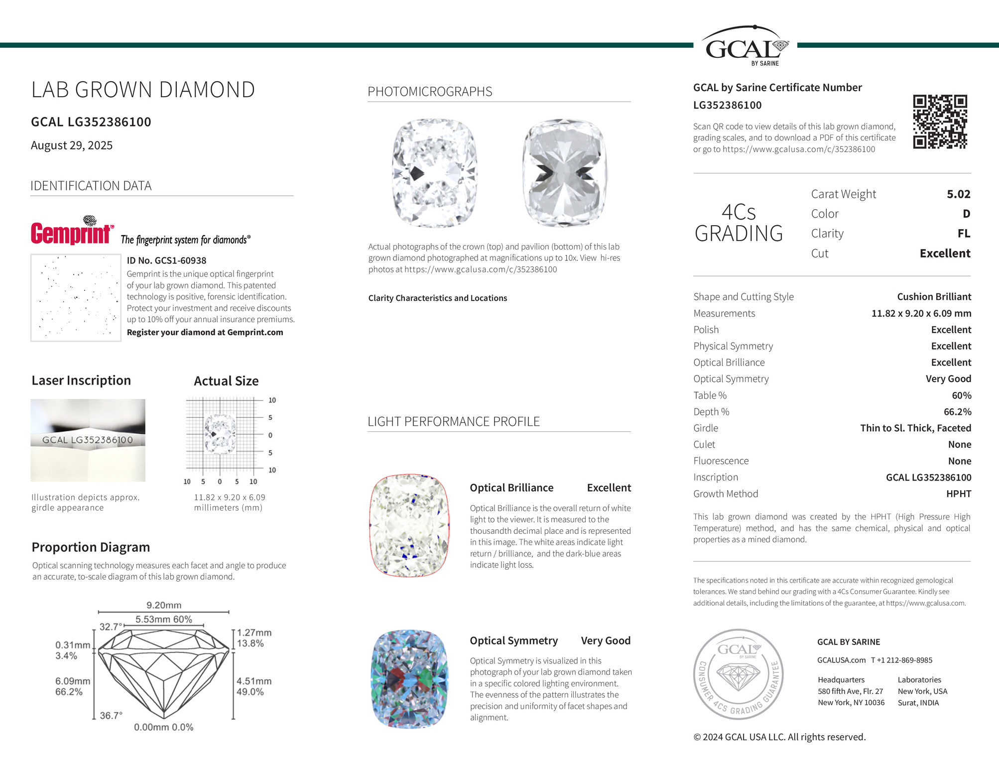 Cushion Brilliant 5.02ct, D, FL, Excellent