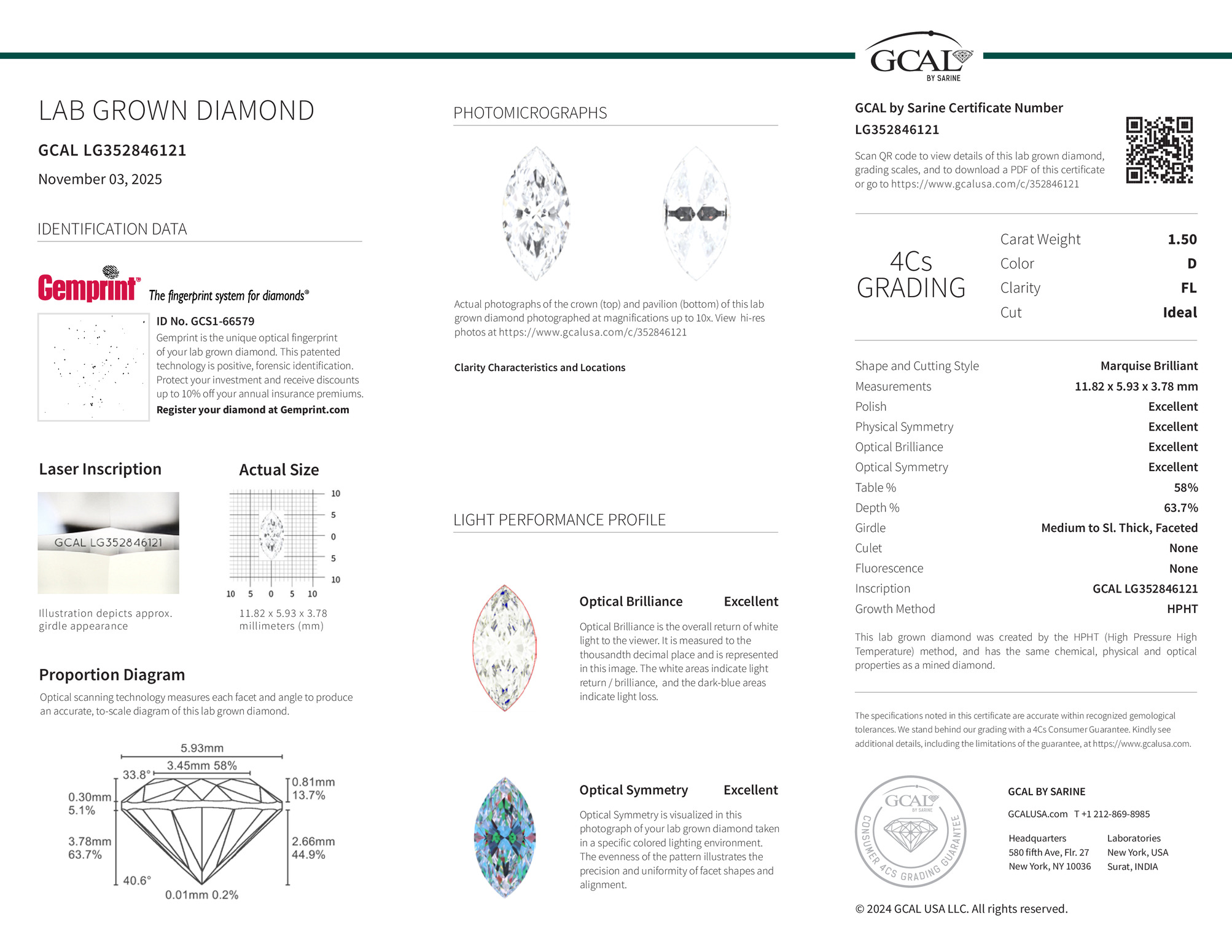 Marquise Brilliant 1.50ct, D, FL, Ideal