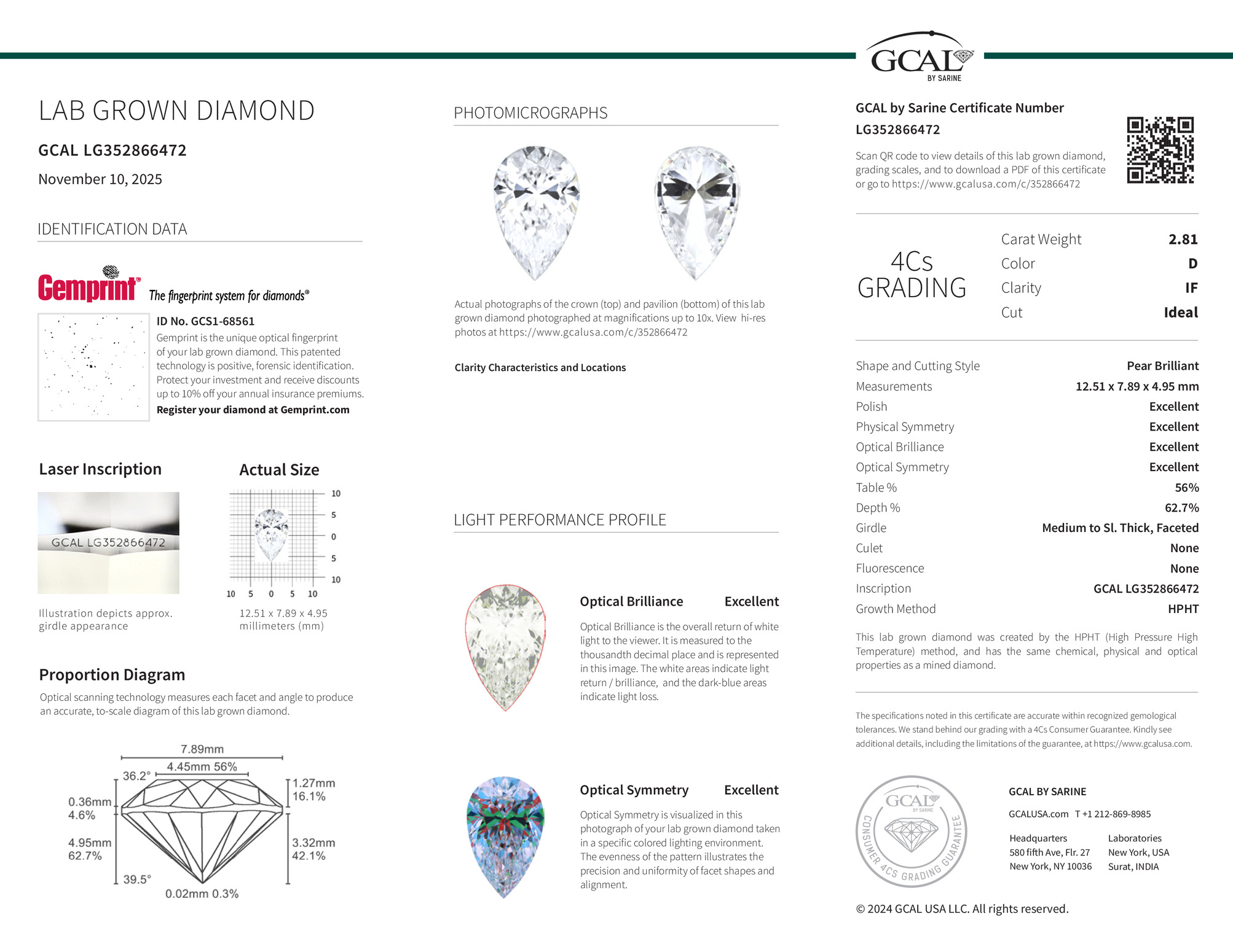 Pear Brilliant 2.81ct, D, IF, Ideal