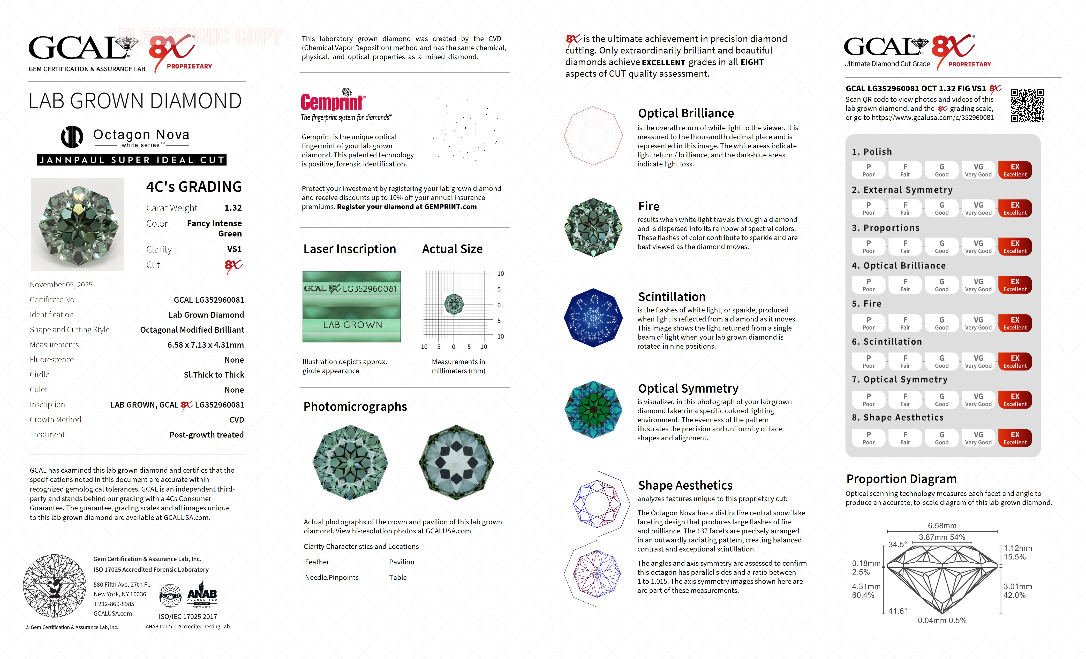 Octagon Nova 1.32ct, Fancy Intense Green, VS1
