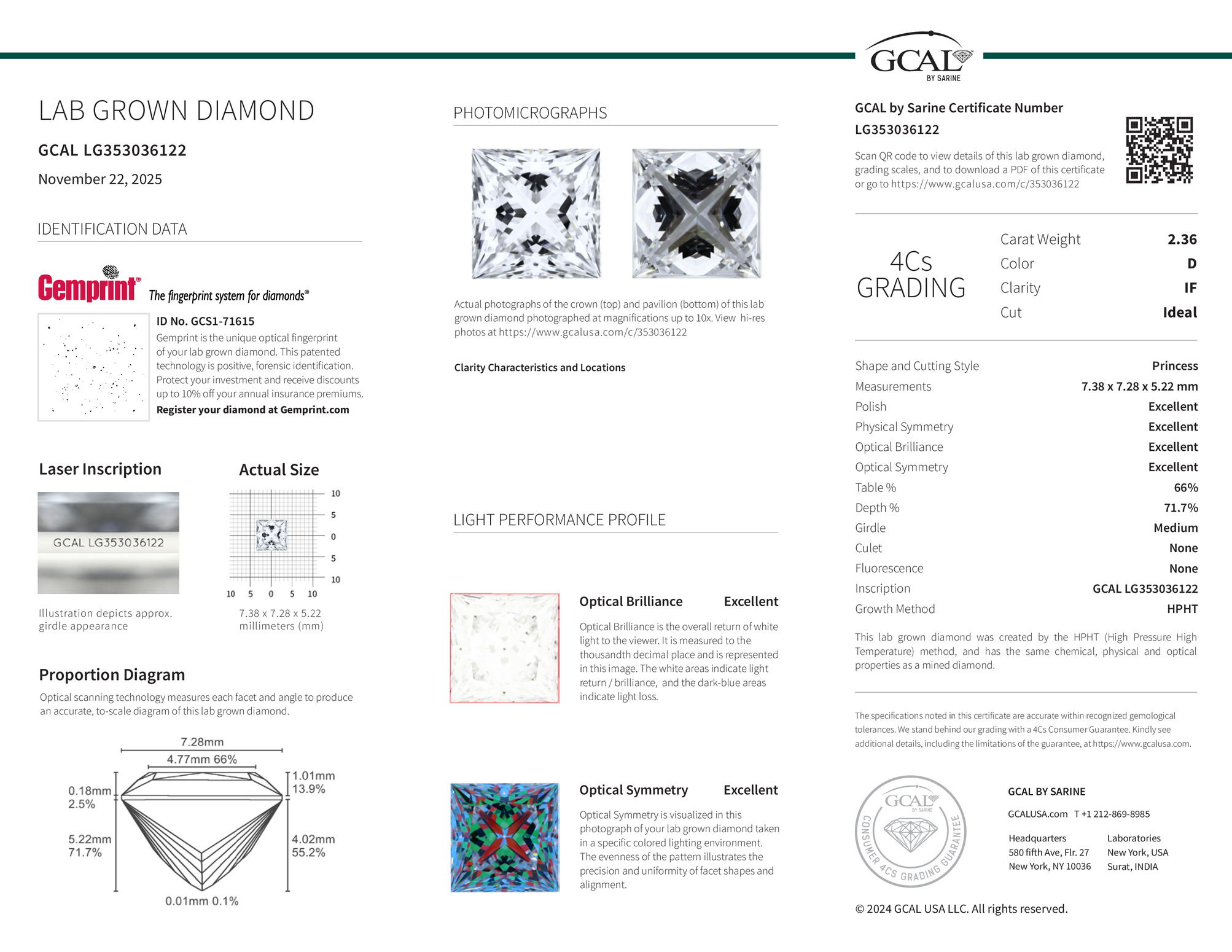 Princess 2.36ct, D, IF, Ideal