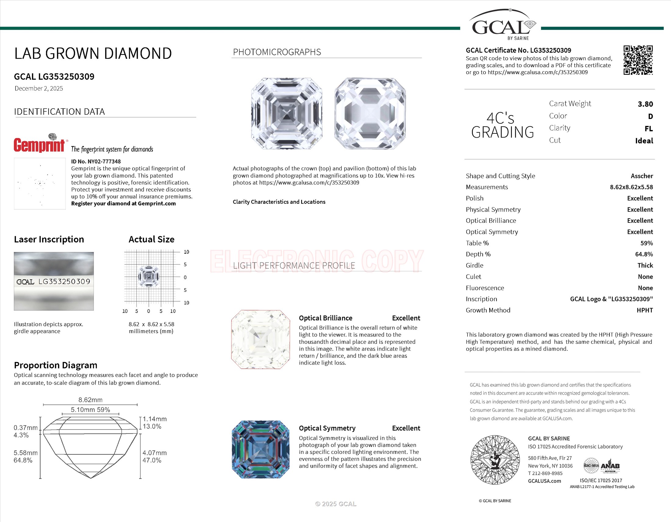 Asscher 3.80ct, D, FL, Ideal