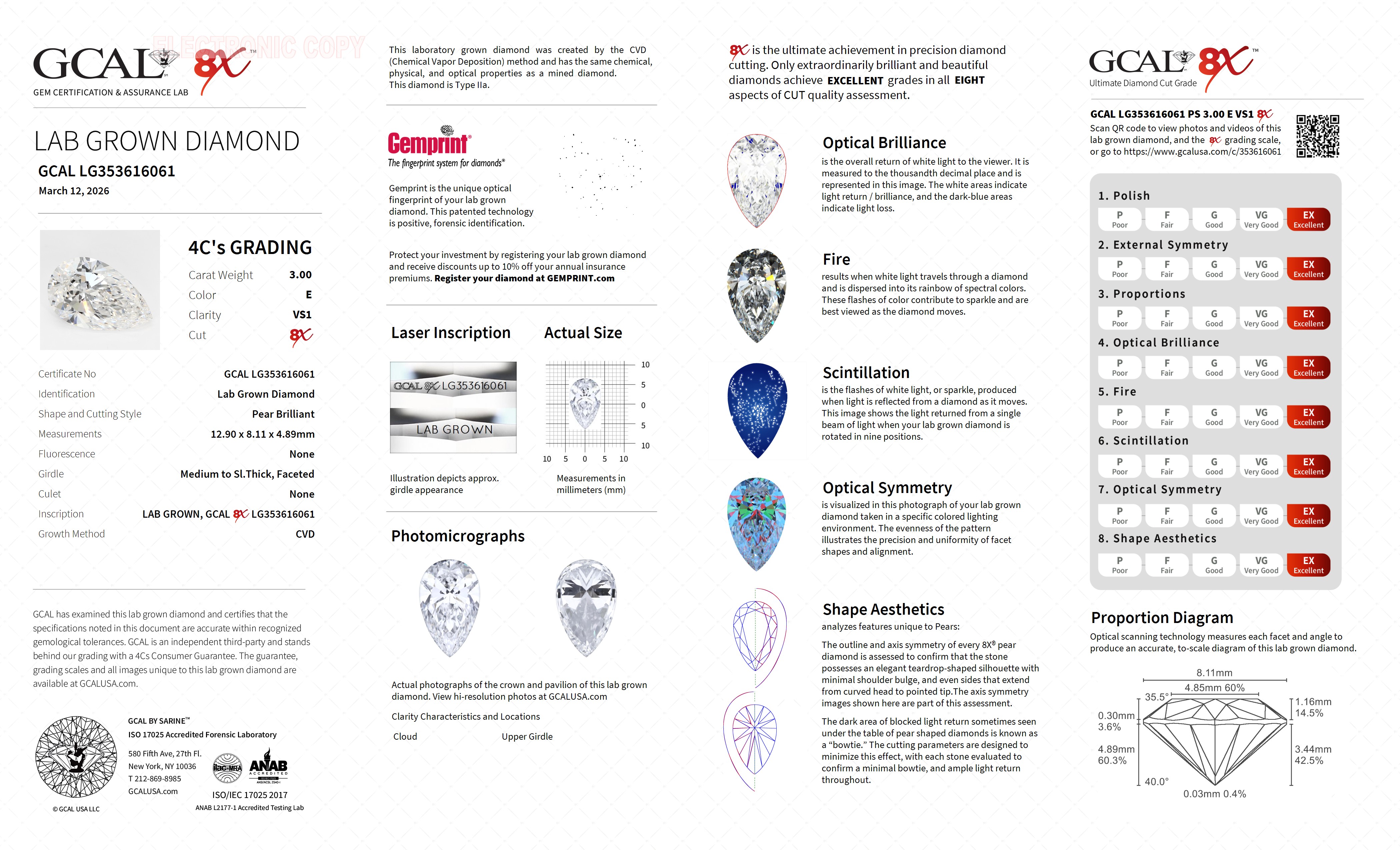 Pear Brilliant 3.00ct, E, VS1