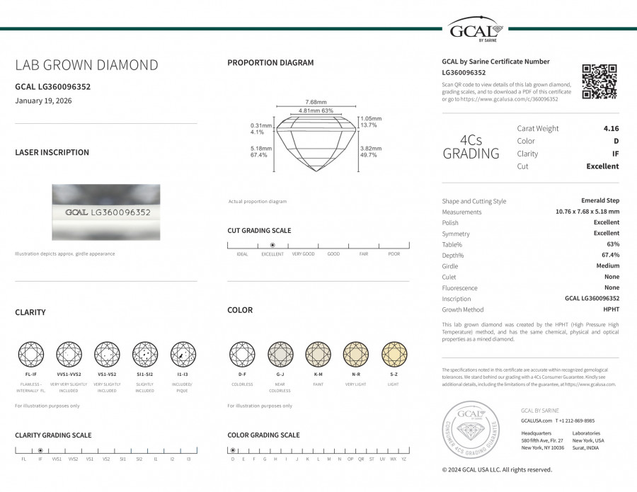 Emerald Step 4.16ct, D, IF, Excellent