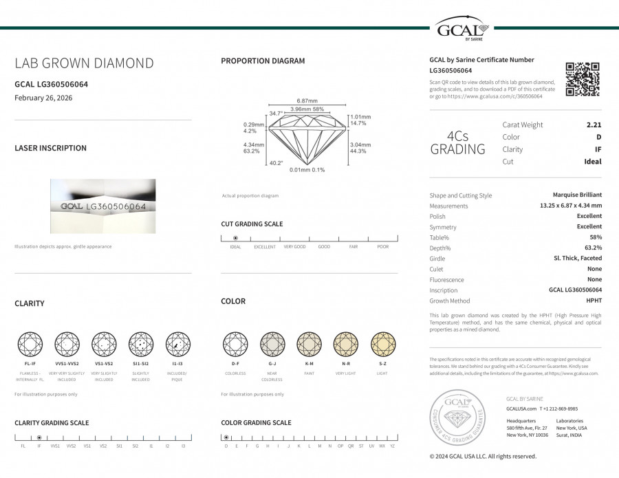 Marquise Brilliant 2.21ct, D, IF, Ideal