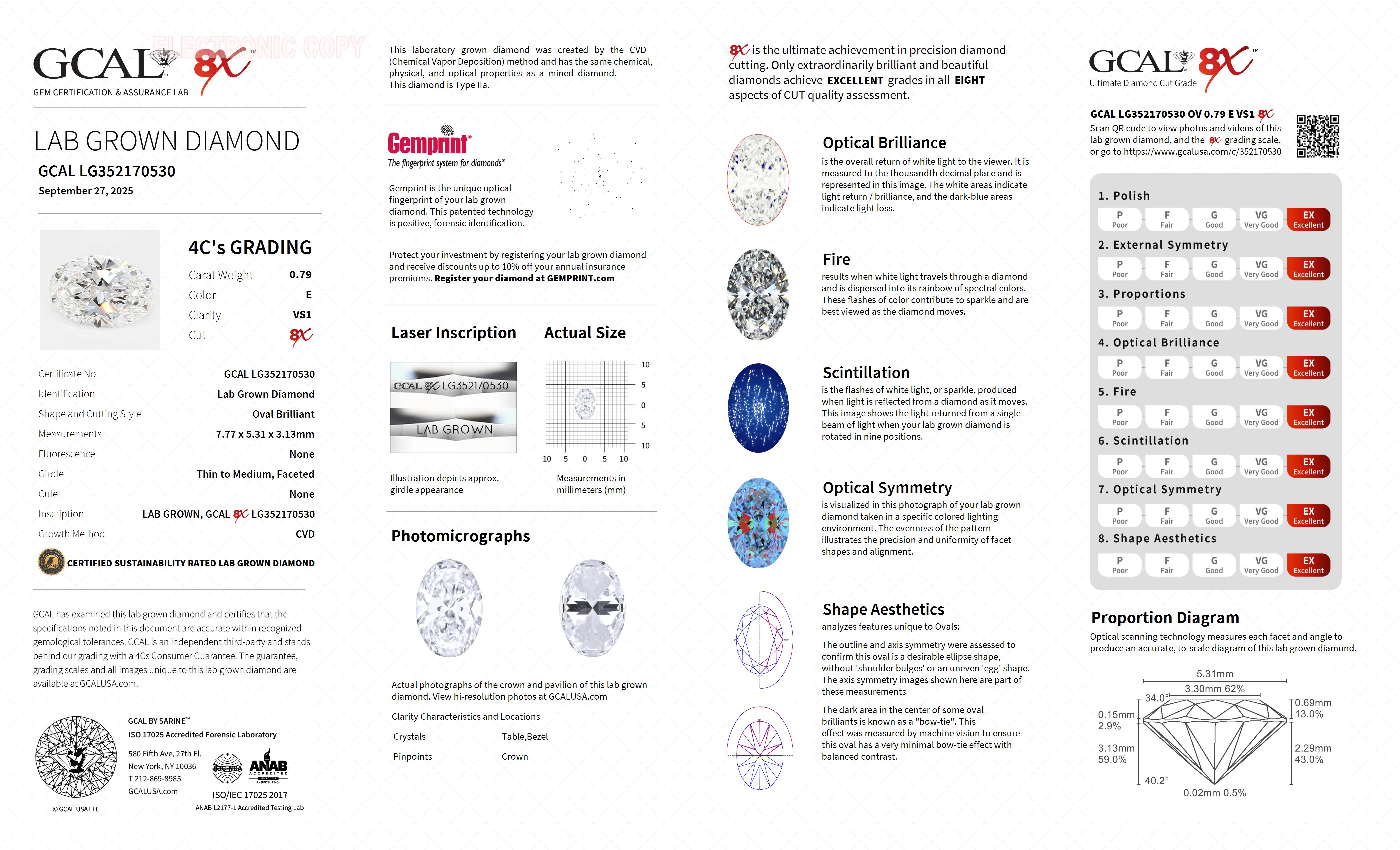 Oval Brilliant 0.79ct, E, VS1