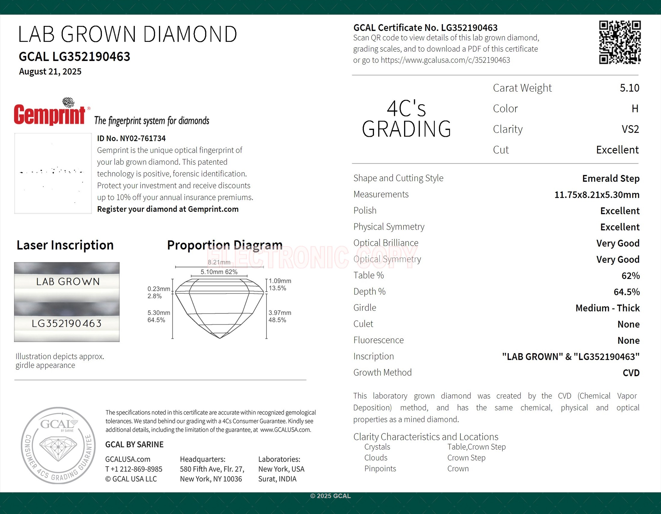Emerald Step 5.10ct, H, VS2, Excellent