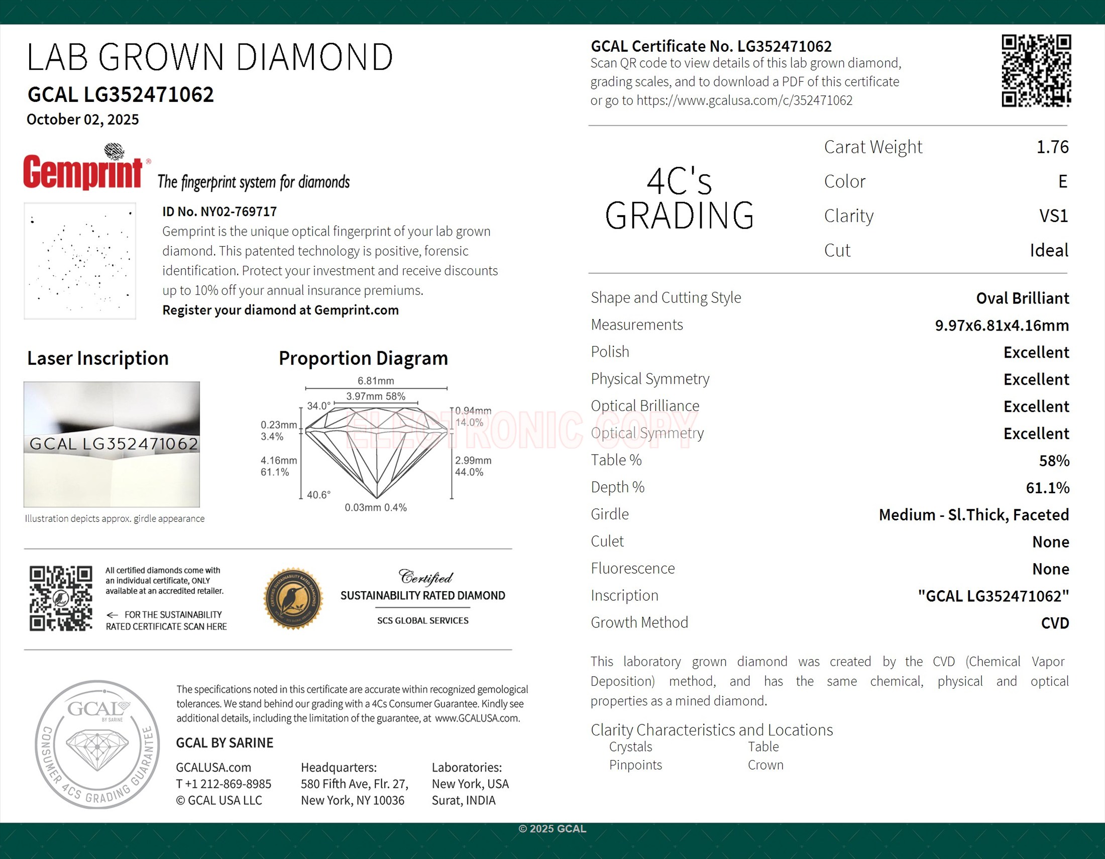 Oval Brilliant 1.76ct, E, VS1, Ideal