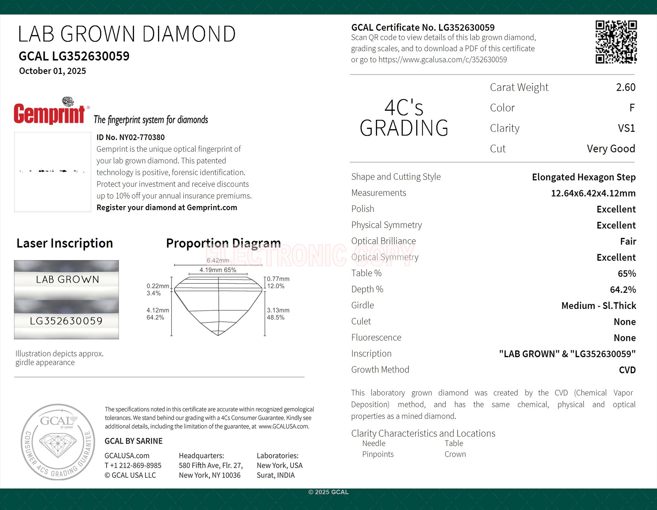 Elongated Hexagon Step 2.60ct, F, VS1, Very Good