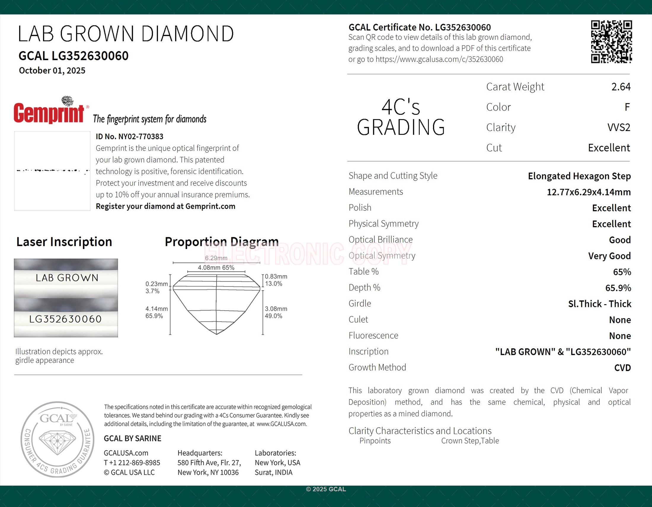 Elongated Hexagon Step 2.64ct, F, VVS2, Excellent