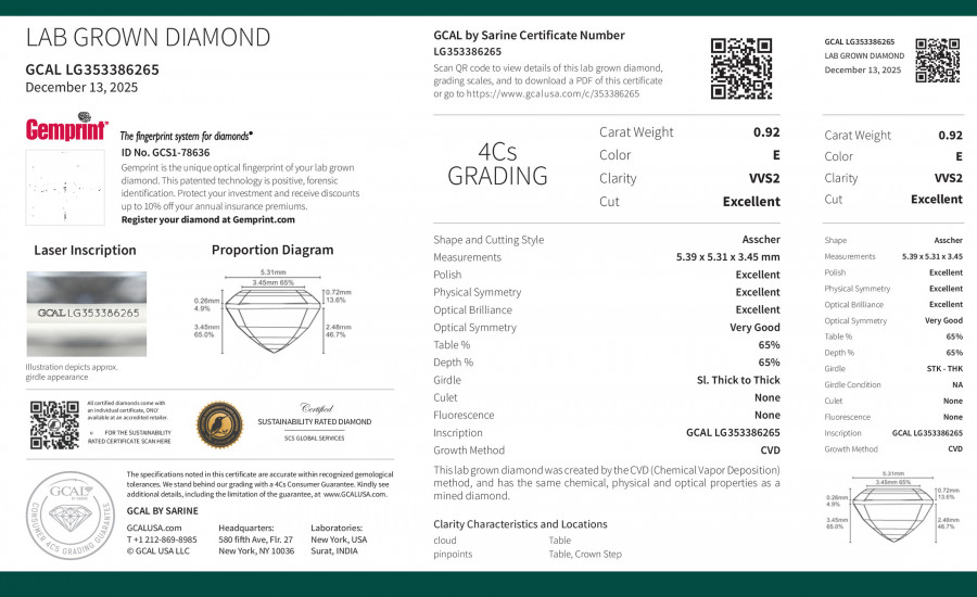 Asscher 0.92ct, E, VVS2, Excellent