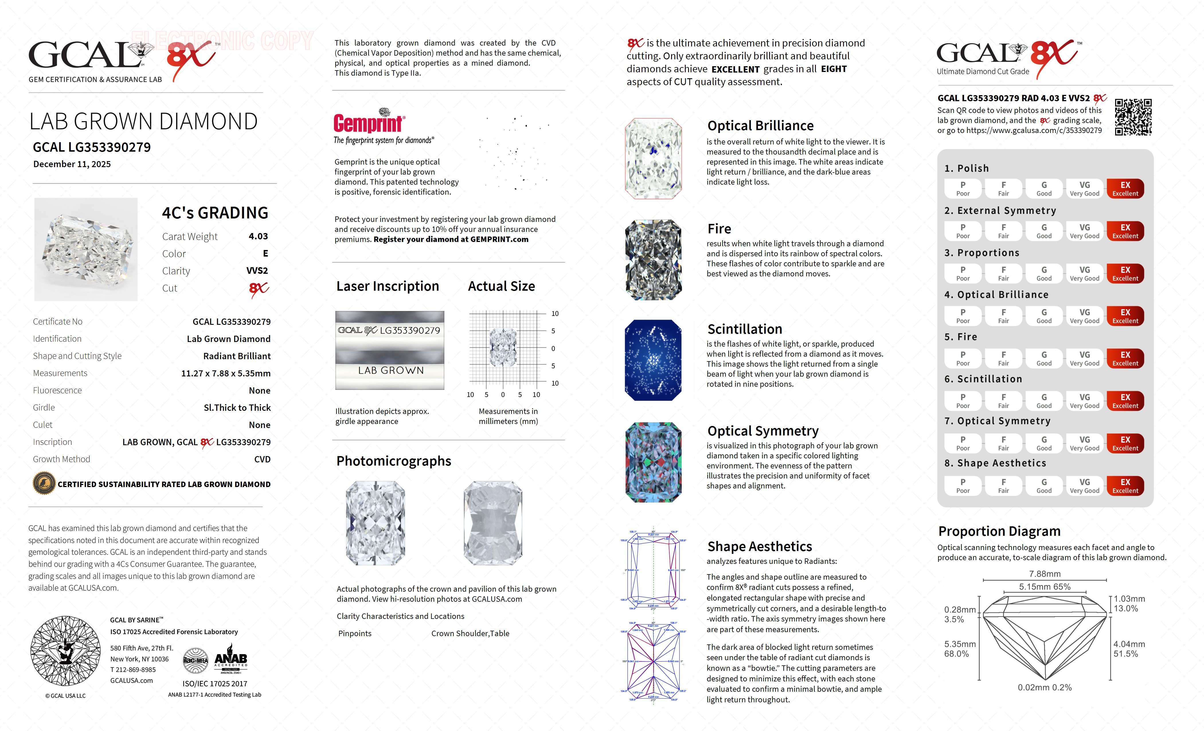 Radiant Brilliant 4.03ct, E, VVS2