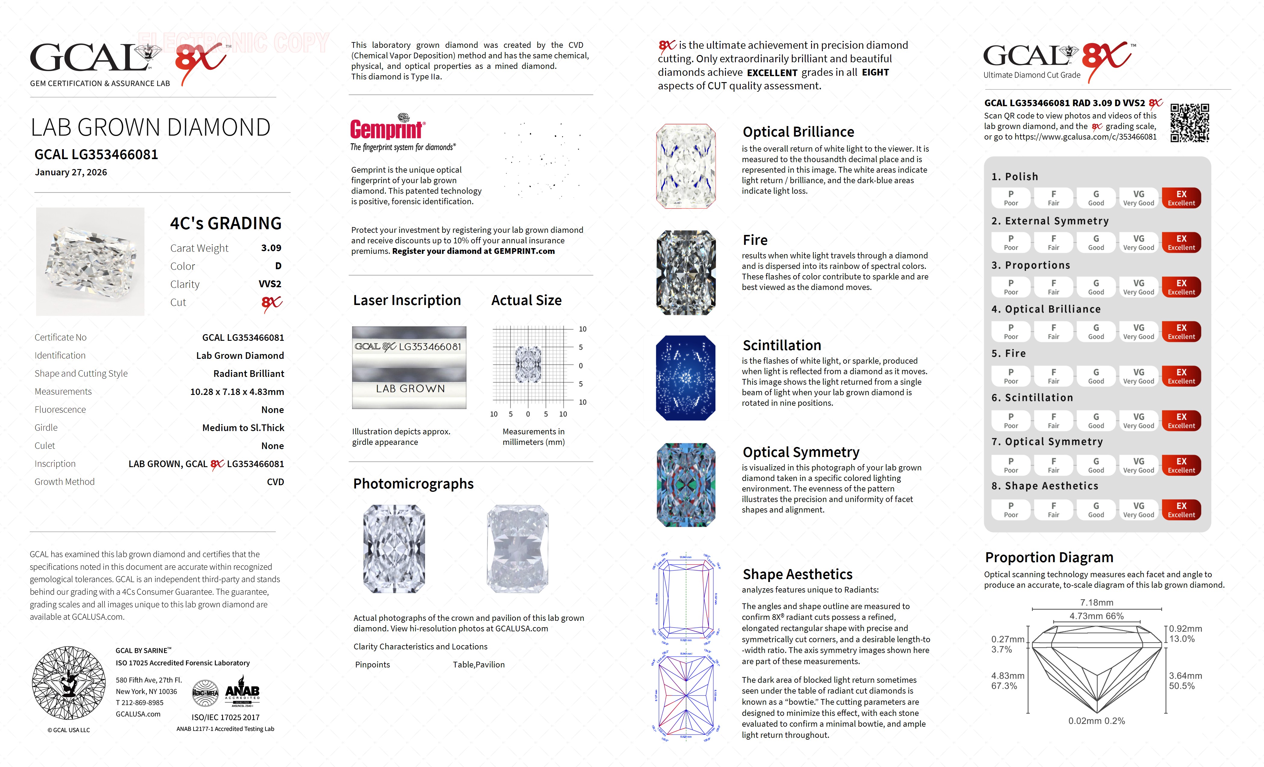 Radiant Brilliant 3.09ct, D, VVS2