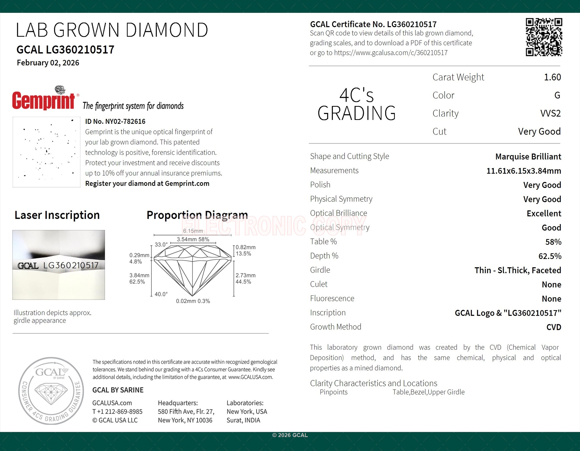 Marquise Brilliant 1.60ct, G, VVS2, Very Good