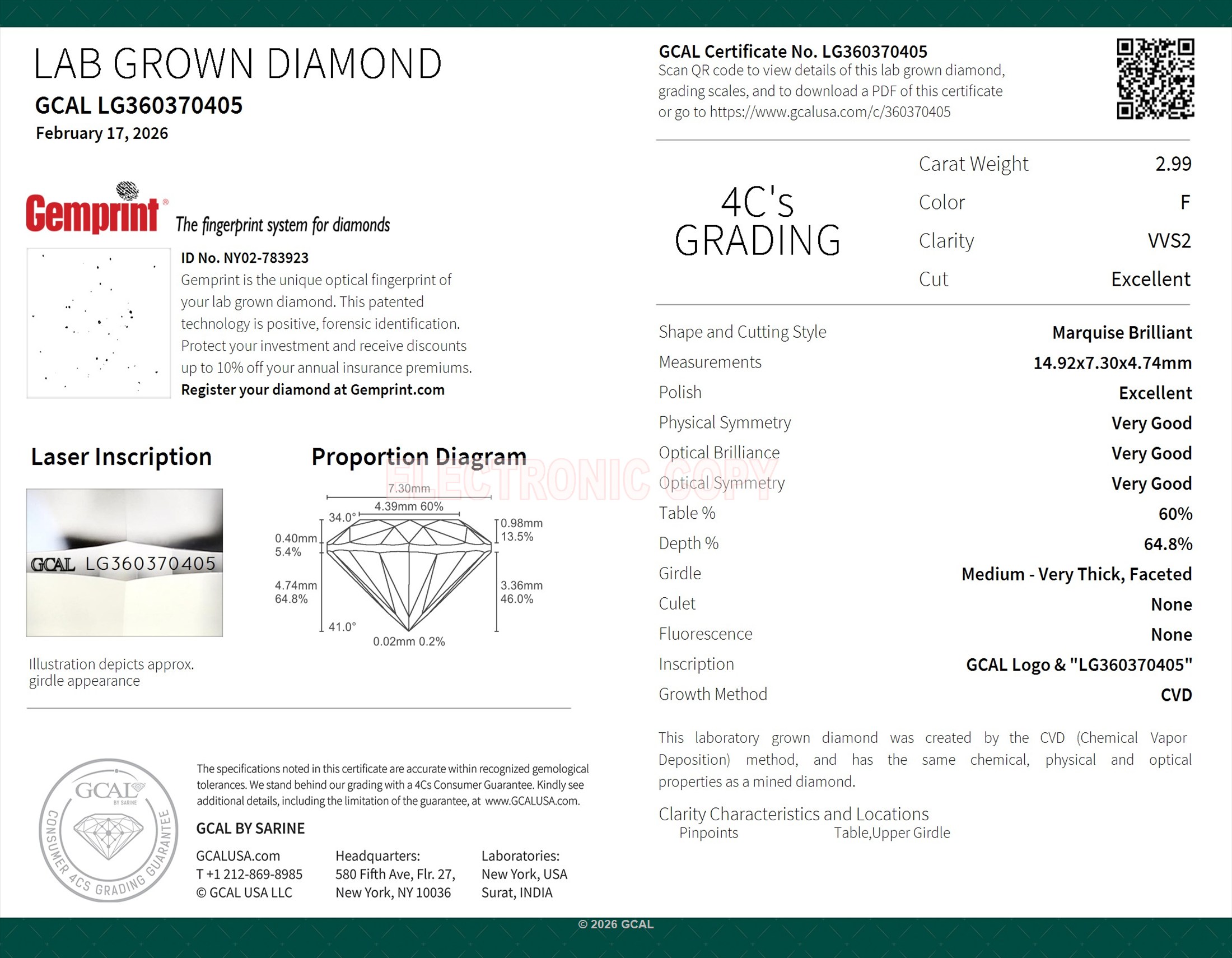 Marquise Brilliant 2.99ct, F, VVS2, Excellent